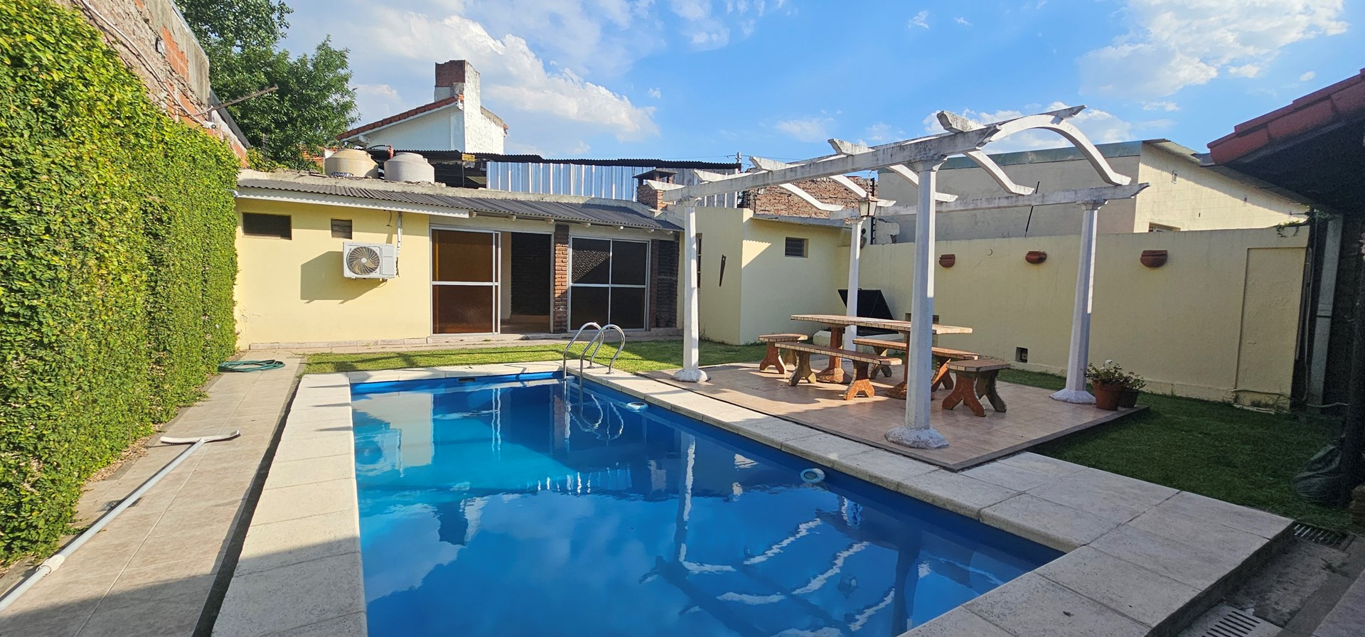 Casa estilo chalet desarrollada a pocas cuadras de la estacion de Padua. La propiedad cuenta con cochera semicubierta con capacidad para dos autos y un cómodo living, comedor de generosas dimensiones, cocina comedor. Dispone de tres dormitorios, destacándose el dormitorio principal con amplio vestidor, además de un pequeño escritorio. cuenta con dos baños completos, funcionales y bien distribuidos. ademas cuenta con, un quincho con lavadero y parrilla y una hermosa pileta de 4x7 con una pergola a su lado que acompaña el espacio al aire libre.