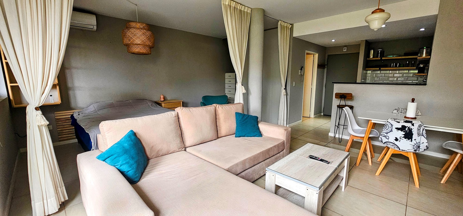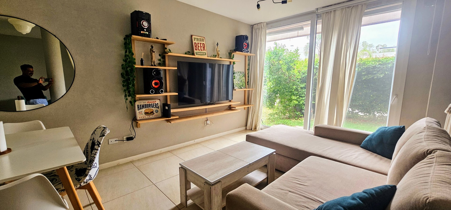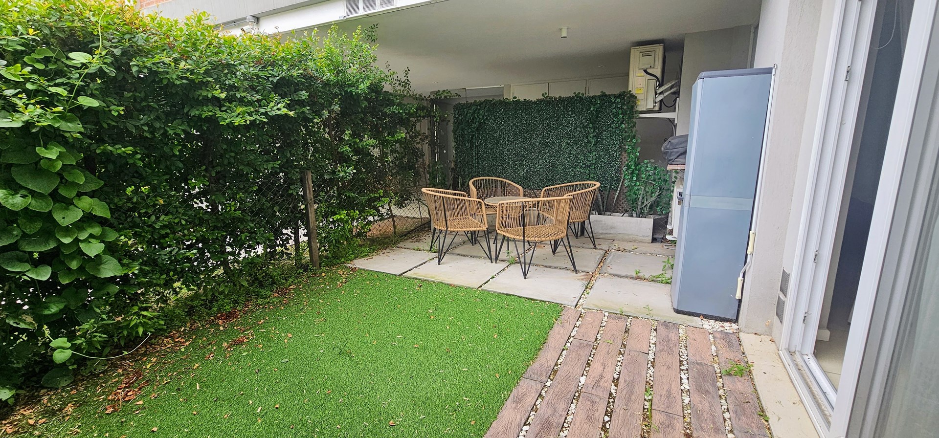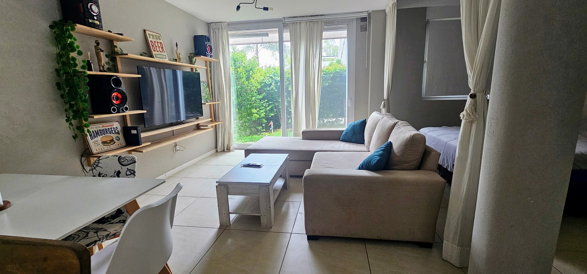 Departamento 2 ambientes | Villa Los Remeros – Tigre Moderno departamento de dos ambientes, desarrollado con formato monoambiente entregado dividido para optimizar su distribución y funcionalidad. La unidad se entrega amueblada, con cocina integrada y baño completo, con terminaciones de calidad y diseño contemporáneo. Cuenta con jardín propio de 22 m², ideal para disfrutar al aire libre y ampliar el espacio de uso diario. Este complejo residencial ofrece múltiples amenities y servicios de confort: Amplia piscina descubierta, SUM (Salón de Usos Múltiples), Áreas verdes parquizadas y espacios comunes, Seguridad 24 hs y cámaras de monitoreo. El complejo está ubicado en Villa Los Remeros, Rincón de Milberg (Tigre), frente al Centro Comercial Remeros Plaza, con acceso a supermercados, restaurantes y servicios, y a pocos minutos del acceso a Nordelta y la Ruta Panamericana. Ideal como vivienda permanente o inversión. Equipamiento y amoblamiento incluido Seguridad: cerradura electrónica. Electrodomésticos: lavarropas Samsung Inverter 9 kg, heladera Samsung Inverter con dispenser de agua, horno eléctrico Electrolux (nuevo), anafe y horno Domec, TV Smart 58”, equipo de música Sanyo. Living / Comedor: mesa nórdica con 4 sillas Eames nuevas, sillón en L a medida (2,40 × 2,10) en tela antimanchas con función cama, sillón de estilo en tela chenille, mesa de living elevable con guardado oculto, mueble y estantería de TV en pinotea, espejo circular de 1 m con borde de acero negro. Dormitorio: sommier Cannon 160 × 200, mesa de luz de pinotea con corredera telescópica, mesita redonda negra, iluminación de diseño, black out. Baño: mueble de pinotea de 5 estantes, cortina de baño de tela batik personalizada, grifería FV, sanitarios Roca. Cocina: estantes de pinotea con luz LED bajo mesada, campana de diseño decorada. Exterior / Jardín: deck simil madera sobre cemento, césped artificial premium, toldo de brazos invisible (2 m, sin uso), parrilla Tromen Angus 480 con mesada de madera, armario exterior de PVC con estantes y sector escobero, mesa exterior de vidrio con 4 sillones, iluminación exterior tipo estaca smart, sistema de riego automático programable por celular. Detalles generales: cortinas de techo a piso y black out en living, aberturas de PVC con DVH hermético, estantes de pinotea en ingreso para abrigos/carteras y estantería adicional de pinotea en pared.